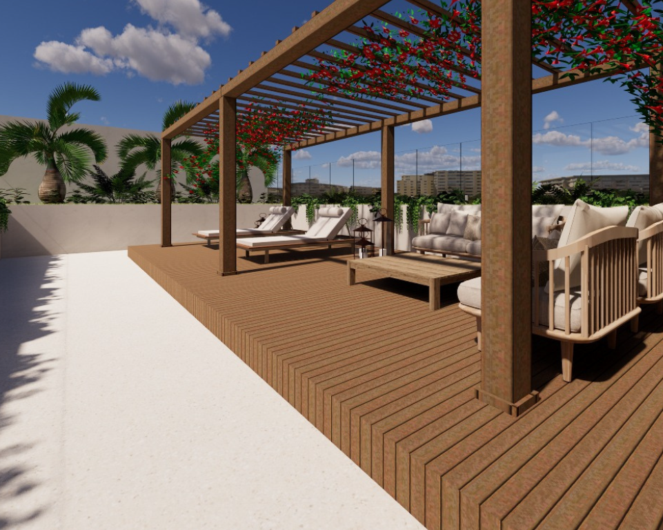 Na cobertura, o destaque vai para o lounge com vista para o jardim e uma piscina que transforma o topo do edifício em um verdadeiro refúgio urbano. Cada detalhe do Marbella foi pensado para oferecer mais do que moradia. É uma experiência de viver bem.